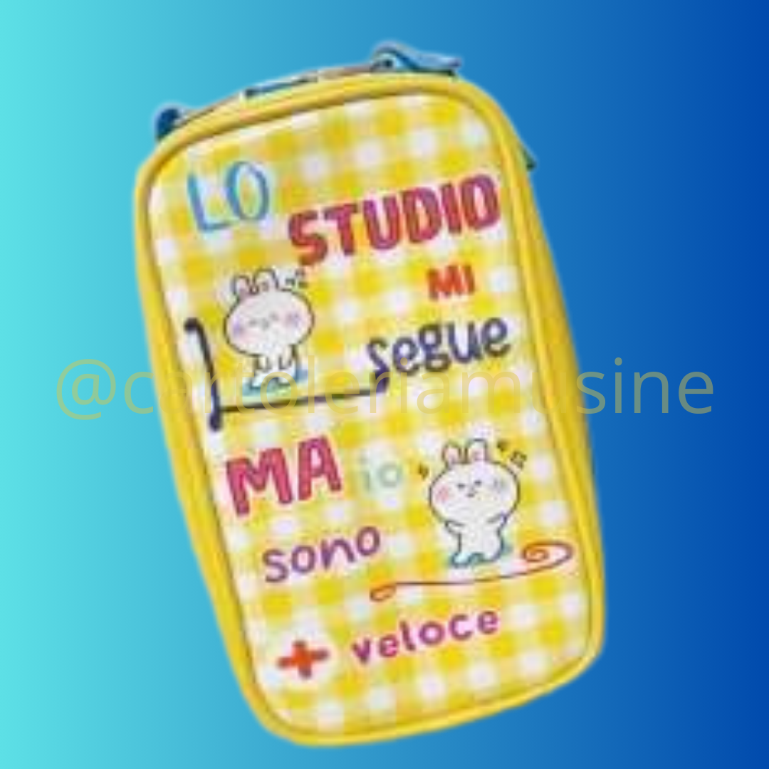 Pratico astuccio verticale Astuccio con moschettone Chiusura Zip calamitata Cassetto a Ribalta Contiene: 24 Pastelli Mina 4.0 Tinta Unita 1 Matita HB Architetto 1 Temperino 1 foro Architetto 1 Gomma Mini Architetto Dimensioni cm. 22 X 6 X 8 24,90€TINTA UNITA STUMBLE GUYS ASTUCCIO 3 ZIP AZZURRO