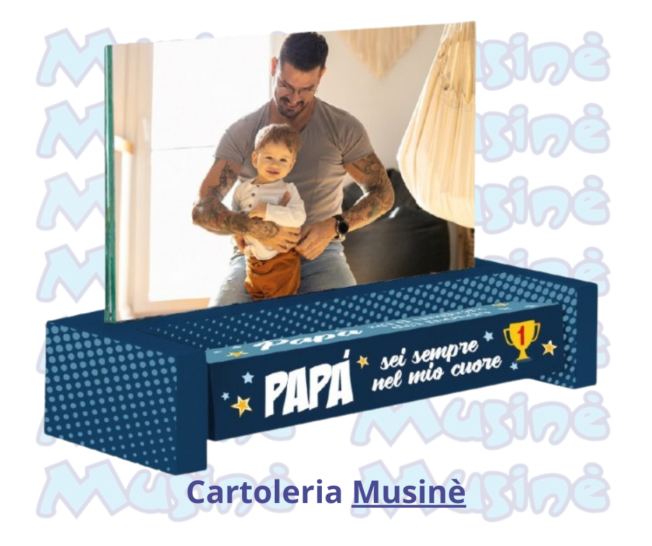 Stupisci il tuo papà con questa allegra cornice portafoto. La base del portafoto contiene un rettangolo in legno, che puoi ruotare per cambiare ogni giorno la frase dedicata. Le frasi sono quattro.