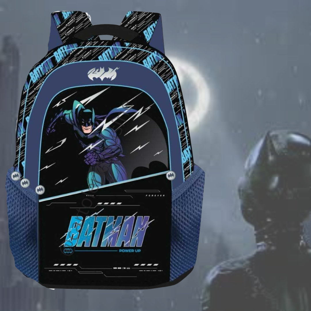 Il tema Power Up è pensato per i veri fan di Batman: grafiche decise, loghi iconici e colori che richiamano l’atmosfera di Gotham City. Con questo zaino, ogni giorno di scuola diventa un’avventura da supereroe.